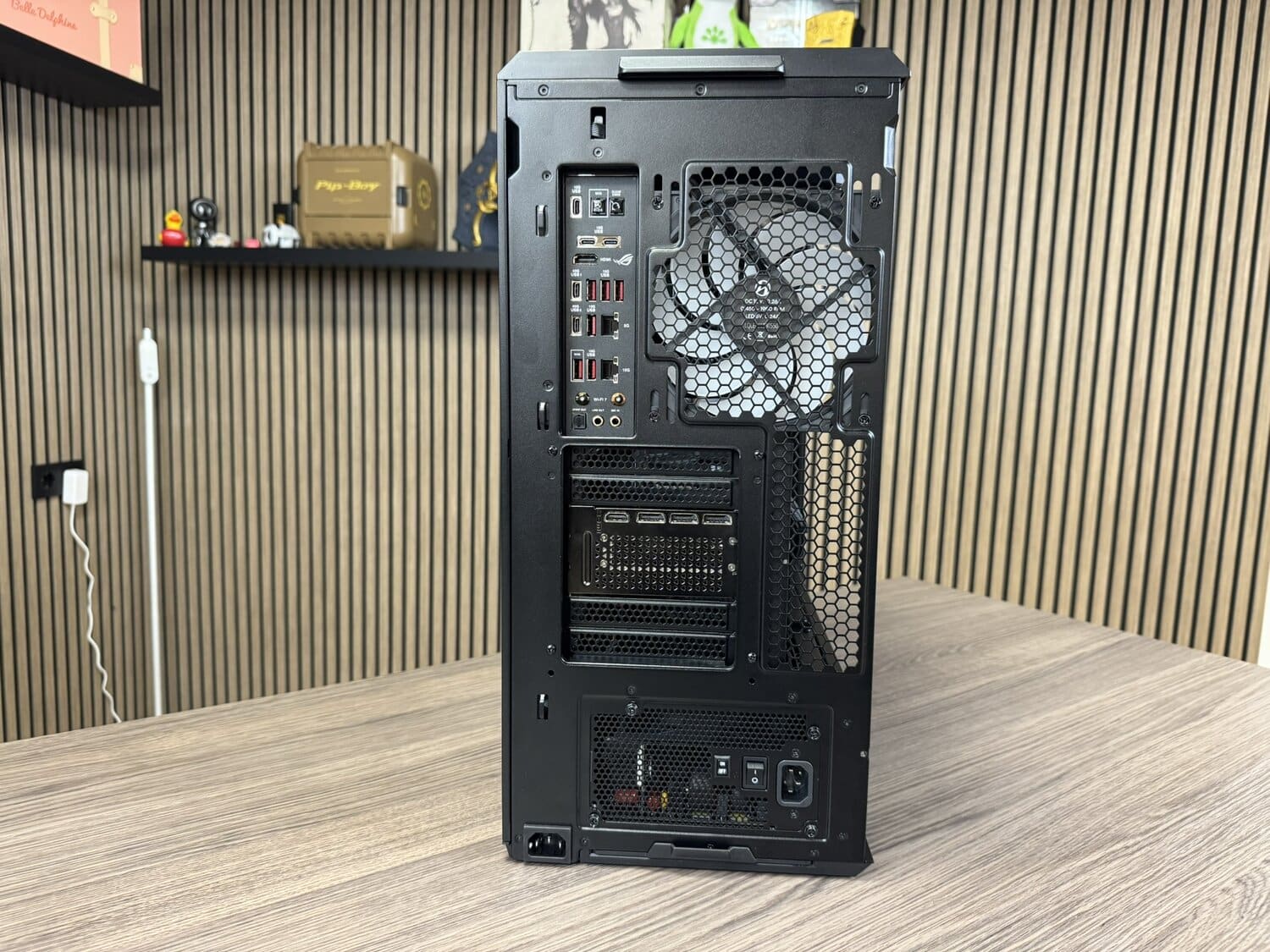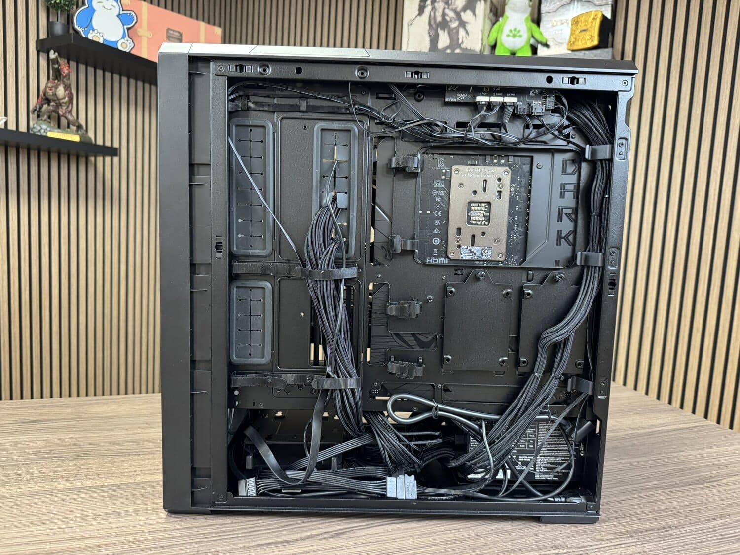 Een leuk pluspunt is de PSU-montage, die je op meerdere manieren kan aanpakken. Je kan hem klassiek plaatsen met de achterkant naar achteren, of een kwartslag draaien voor een cleanere look aan de achterkant van de pc. Deze laatste optie ziet er strak uit, al betekent het wel dat je iets meer moet nadenken over je kabelrouting; iets wat Dennis uiteraard wel deed natuurlijk.