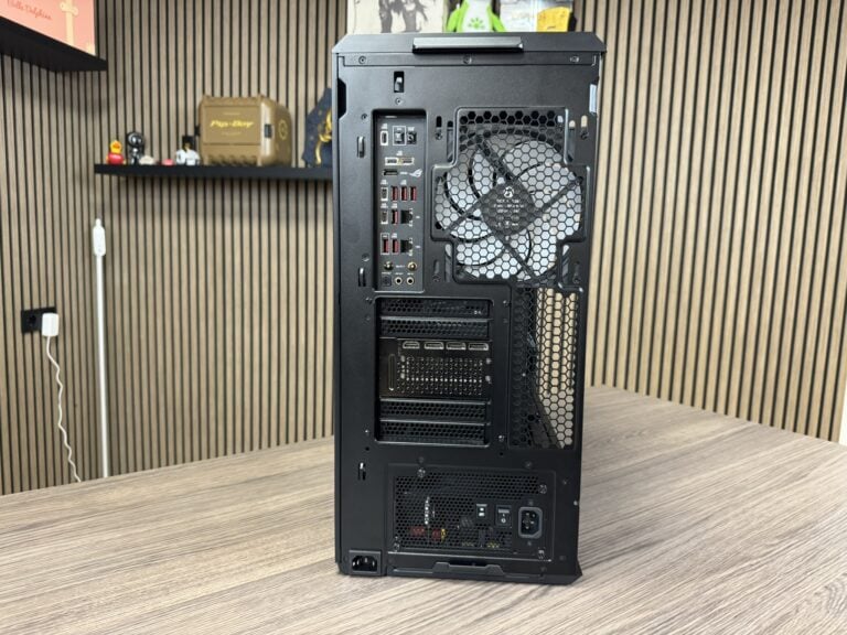 Een minpuntje waar Dennis al vlug achterkwam, is het ontbreken van een afneembare moederbordtray Daardoor is het plaatsen van het moederbord net wat minder relaxed dan bij sommige andere behuizingen. Dat gevoel wordt versterkt door de voorgeïnstalleerde 140 mm-fan aan de achterkant, die de ruimte tijdens de installatie wat beperkt. Geen ramp hoor, maar wel een moment waarop de concentratie even omhoog moet… en het gelach op de achtergrond meestal ook.