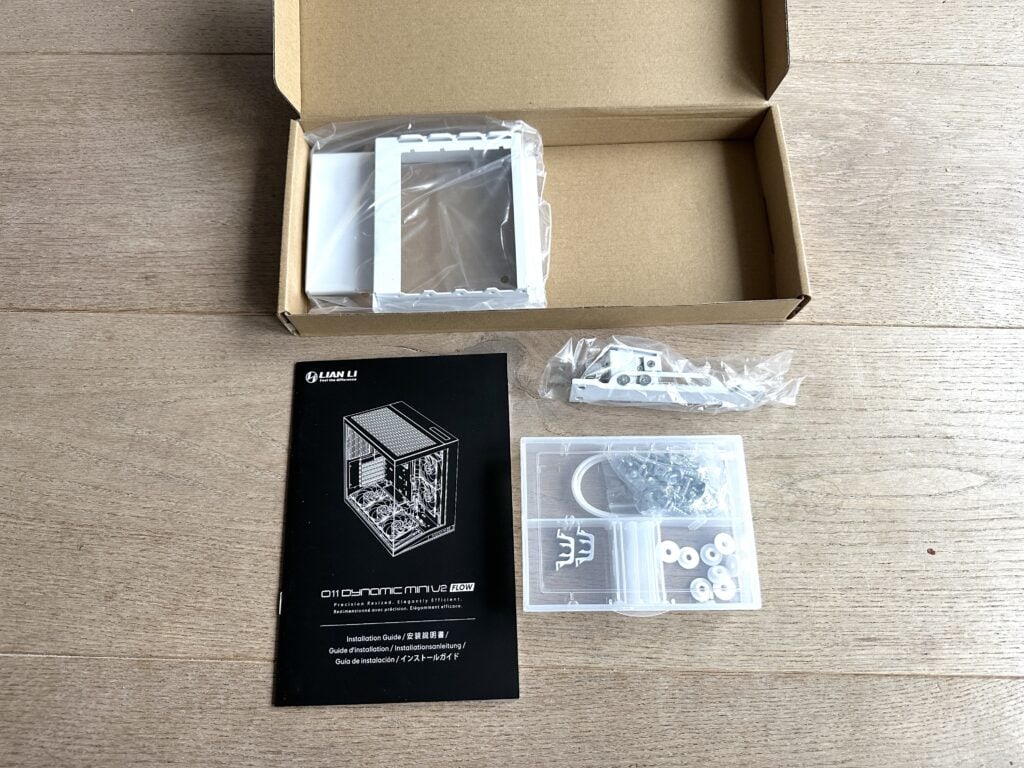 Hoewel de verpakking van de O11D Mini V2 Flow op het eerste gezicht vrij eenvoudig lijkt, is de doos stevig en voorzien van speciaal schuim dat de behuizing goed op zijn plek houdt. Dit zorgt voor uitstekende bescherming tegen schokken en stoten tijdens het transport. Net als bij de King 95 Pro zien we gelukkig geen piepschuim meer - iets wat we steeds minder willen zien in verpakkingen. Het schuim biedt niet alleen betere ondersteuning, maar is ook duurzamer en laat geen rommel achter bij het uitpakken. Dankzij deze zorgvuldige verpakking komt de O11D Mini V2 Flow veilig en onbeschadigd aan.
