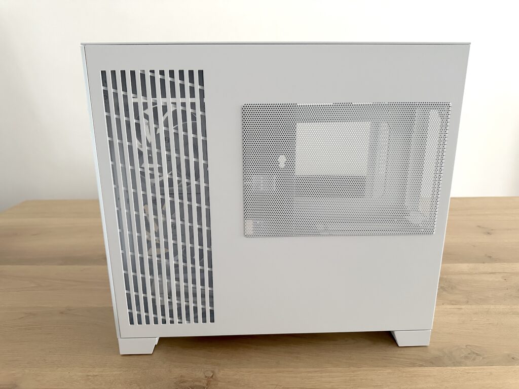 Als we kijken naar de bouwkwaliteit, maakt de O11D Mini V2 Flow een sterke indruk. Het frame is robuust, de panelen sluiten mooi aan en de afwerking voelt degelijk en duurzaam aan. Alles zit goed op zijn plek zonder speling, waardoor de kast stevig aanvoelt en mooi in elkaar zit.