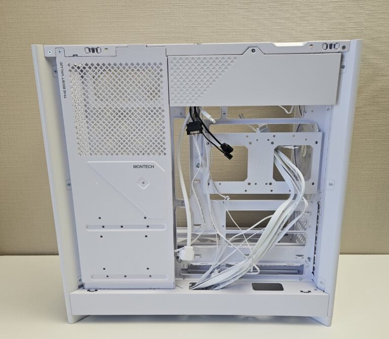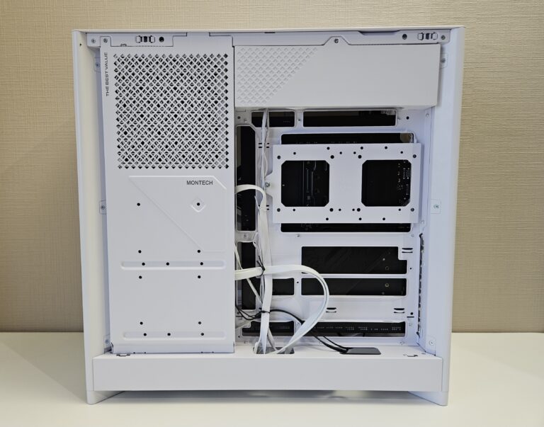 De Montech HS02 Pro weet zich duidelijk te onderscheiden in het segment van midrange-pc-behuizingen. Met zijn panoramisch glazen design, slimme indeling voor kabelmanagement en verrassende keuzes zoals de voorin geplaatste voeding en dubbele achterventilatoren, levert Montech een kast die zowel functioneel als visueel sterk scoort. Het inbouwen verloopt vlot dankzij de vele doordachte details en afdekplaten, waardoor het geheel er strak en georganiseerd uitziet.