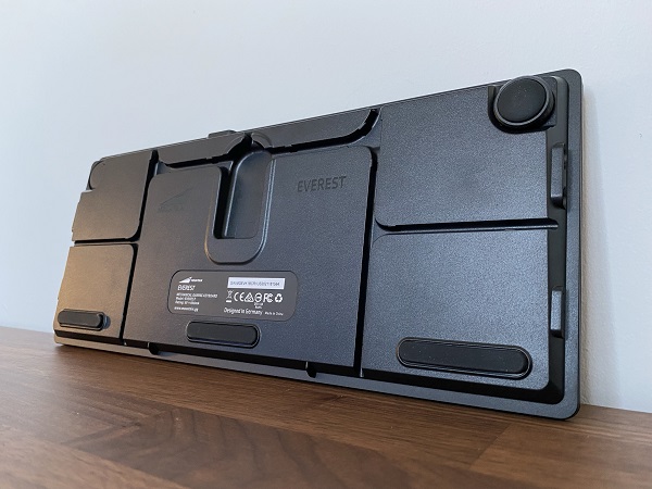 In de Everest Max zie ik veel verfijningen van verschillende toetsenborden over de jaren heen. Het toetsenbord heeft veel features (eigenschappen) en past deze correct toe, wat het toetsenbord dusdanig volwaardig maakt, ofwel een vlaggenschip aan mogelijkheden. De achterkant komt hier ook zijn belofte na. Kabelmanagement is dankzij de kabelgeleiders (kanalen) goed mogelijk. Links, rechts of door het midden heen; de kabel vindt zijn weg naar de USB Type-aansluiting onderop het toetsenbord. Gesproken over een mooi detail: wat dacht je van de pootjes? Gebruikelijk zien we uitklapbare pootjes op toetsenborden, maar ook hier doet de Everest Max het nét wat anders. Middels magneetjes verhoog en verlaag je het toetsenbord. Standaard levert Mountain extra magneetjes mee. Idem dito voor de numpad, want die is ook middels magneetjes te verstellen in hoogte.