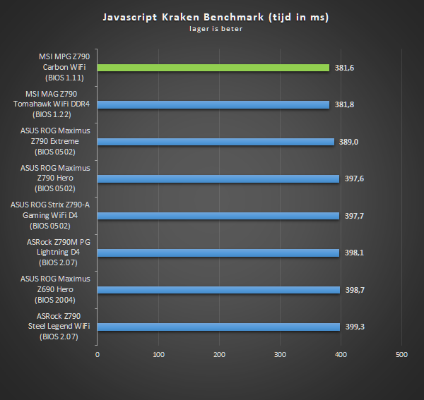 Hieronder zijn resultaten te zien van de MSI MPG Z790 Carbon WiFi tegenover andere Z790 of Z690-moederborden. Het doel is om in dit hoofdstuk een algemene indruk van prestaties te geven. Prestatieverschillen tussen moederborden zijn veelal marginaal en niet te herleiden in de praktijk, kortom: het verschil is niet significant. Belangrijker gespreksonderwerp bij moederborden zijn zaken zoals de prijs, features en algemene kenmerken. Er is in de basis getest met een Intel Core i9-12900K, gezien we deze processor in eigen bezit hebben en consistent kunnen opvoeren. Voor de Intel Core i9-13900K resultaten verwijs ik je graag door naar onze geschreven review.