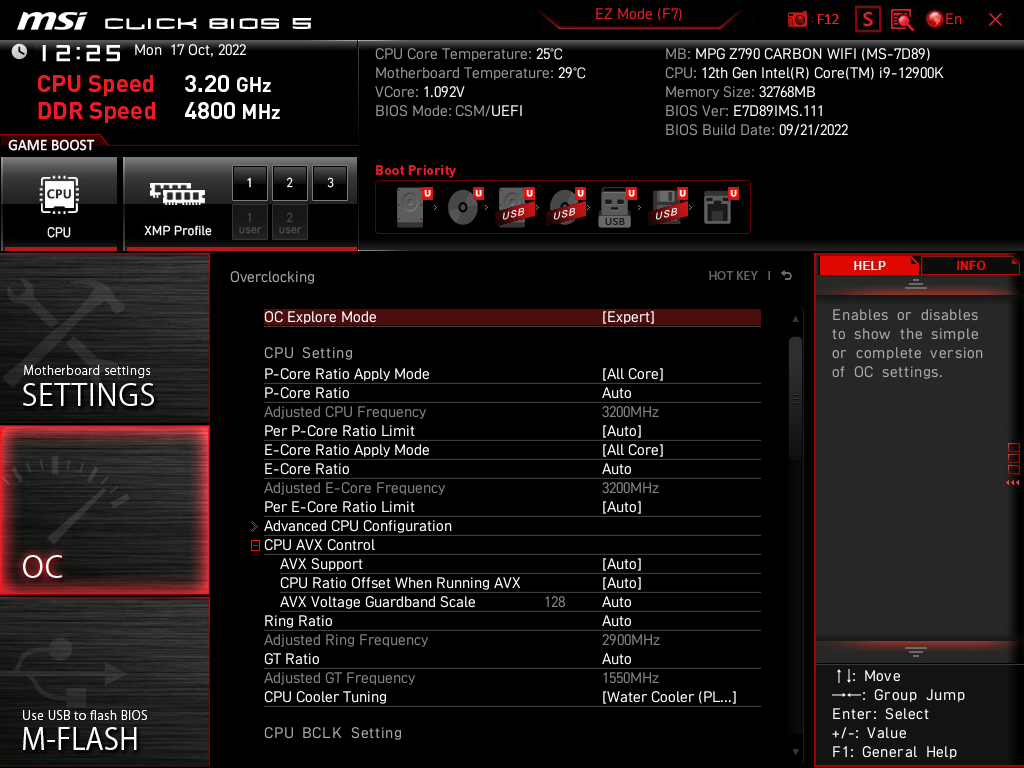 Het overklokmenu heeft een ingebouwde tune-functie voor het type koeler dat gemonteerd is. Verder bestaat deze uit twee schillen; basis en expert. In de expert-modus zijn meer mogelijkheden toegankelijk, waaronder het spelen met voltages.