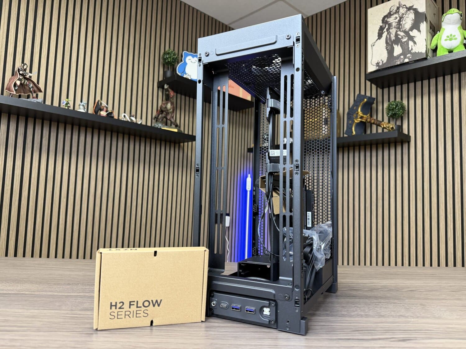 De nieuwe NZXT H2 Flow-behuizing roept “a trip down memory lane"-gevoelens op. De H1 maakte zijn debuut in 2021, waarna er in 2022 nog een H1 V2-revisie plaatsvond met verbeteringen omwille van problemen met de riserkabel, maar ook algemene verbeteringen als het om compatibiliteit gaat.