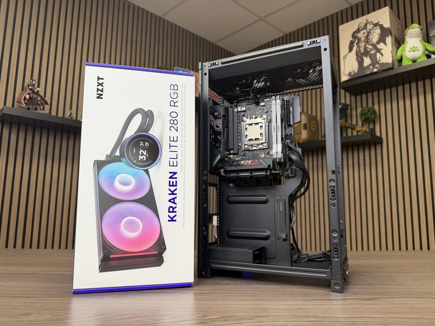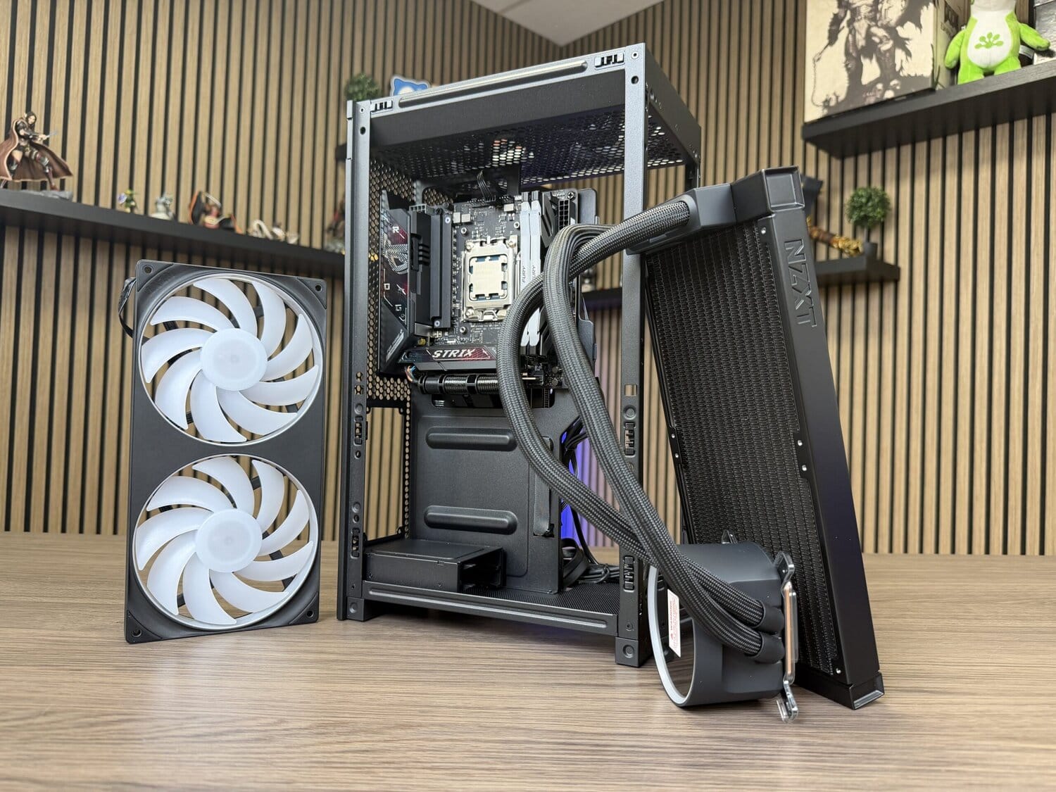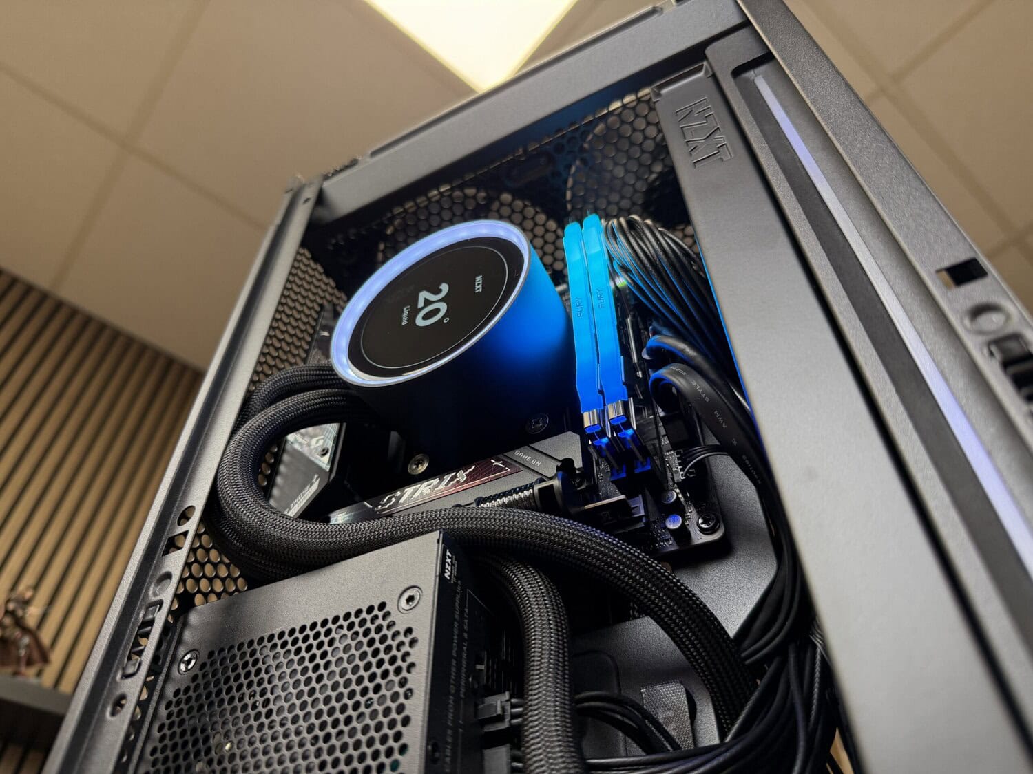 Wel hadden we wat moeite om de Kraken Elite 280 RGB te plaatsen, aangezien deze in de weg kwam te zitten met de moederbordtray aan de bovenzijde. We hebben de bracket 180 graden gedraaid, waarna deze met extra aandacht goed op zijn plaats kwam. Dit is overigens de enige belemmering die we kunnen opmerken tijdens het bouwen.