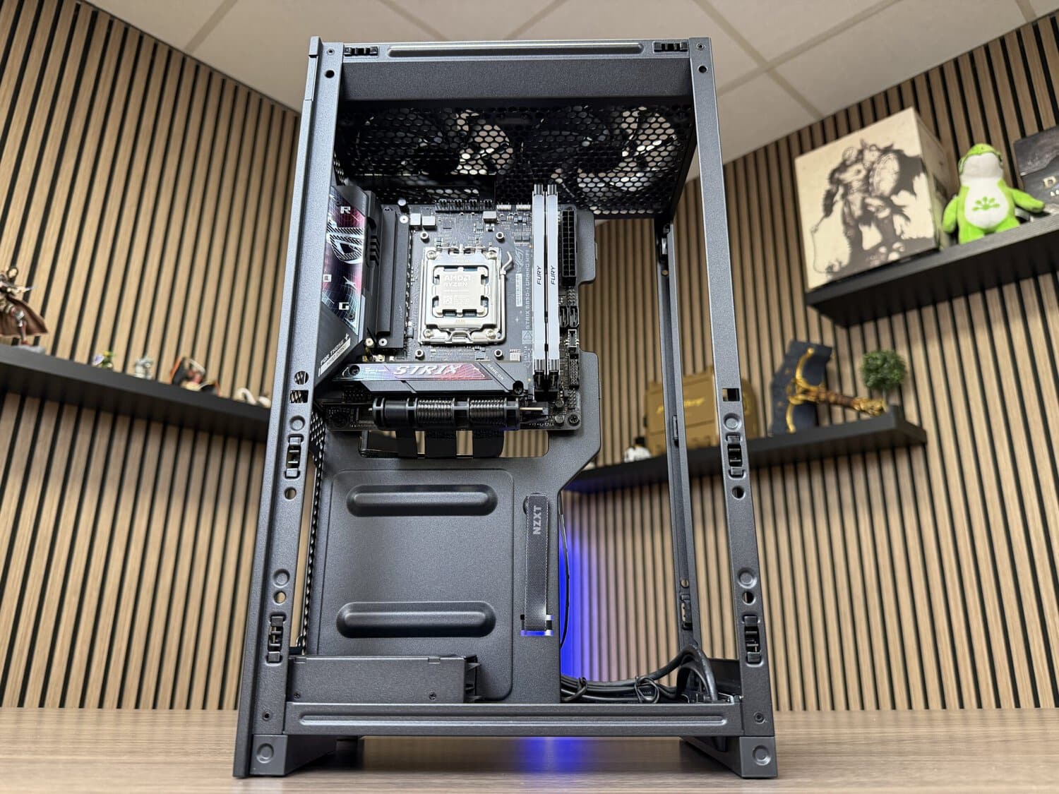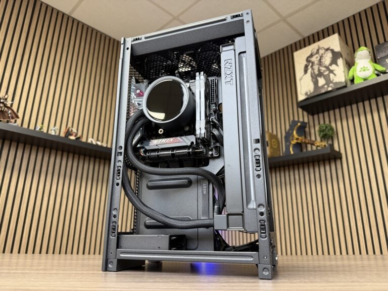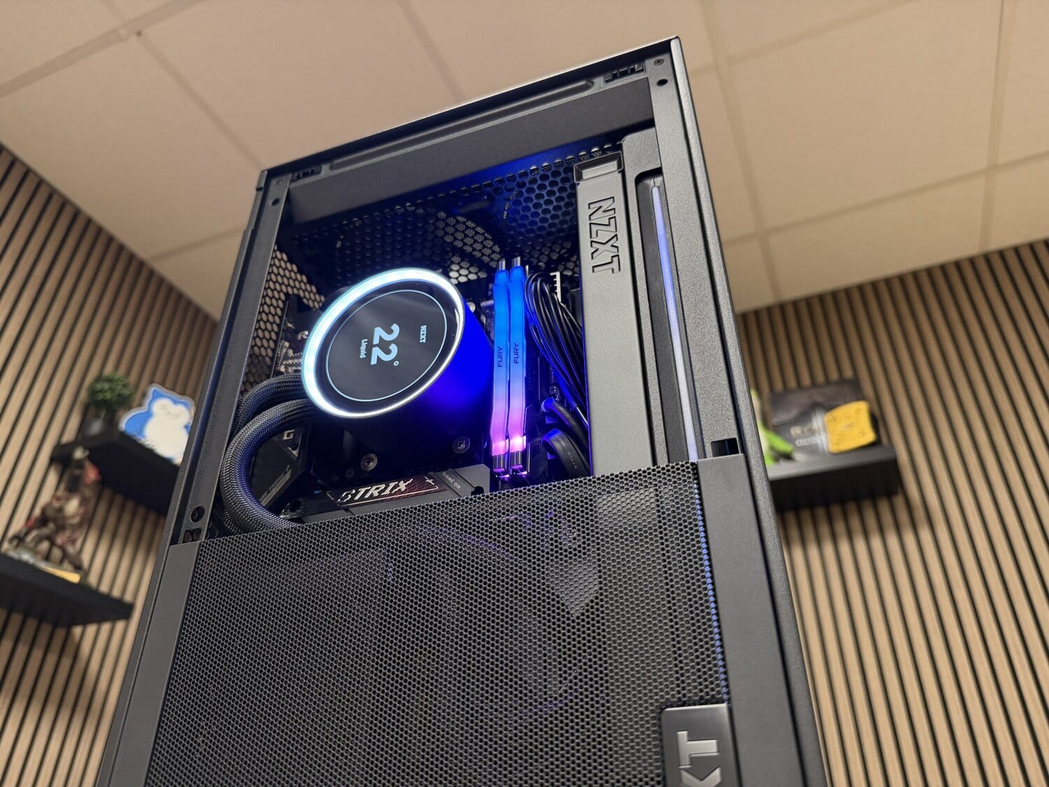 Wel hadden we wat moeite om de Kraken Elite 280 RGB te plaatsen, aangezien deze in de weg kwam te zitten met de moederbordtray aan de bovenzijde. We hebben de bracket 180 graden gedraaid, waarna deze met extra aandacht goed op zijn plaats kwam. Dit is overigens de enige belemmering die we kunnen opmerken tijdens het bouwen.