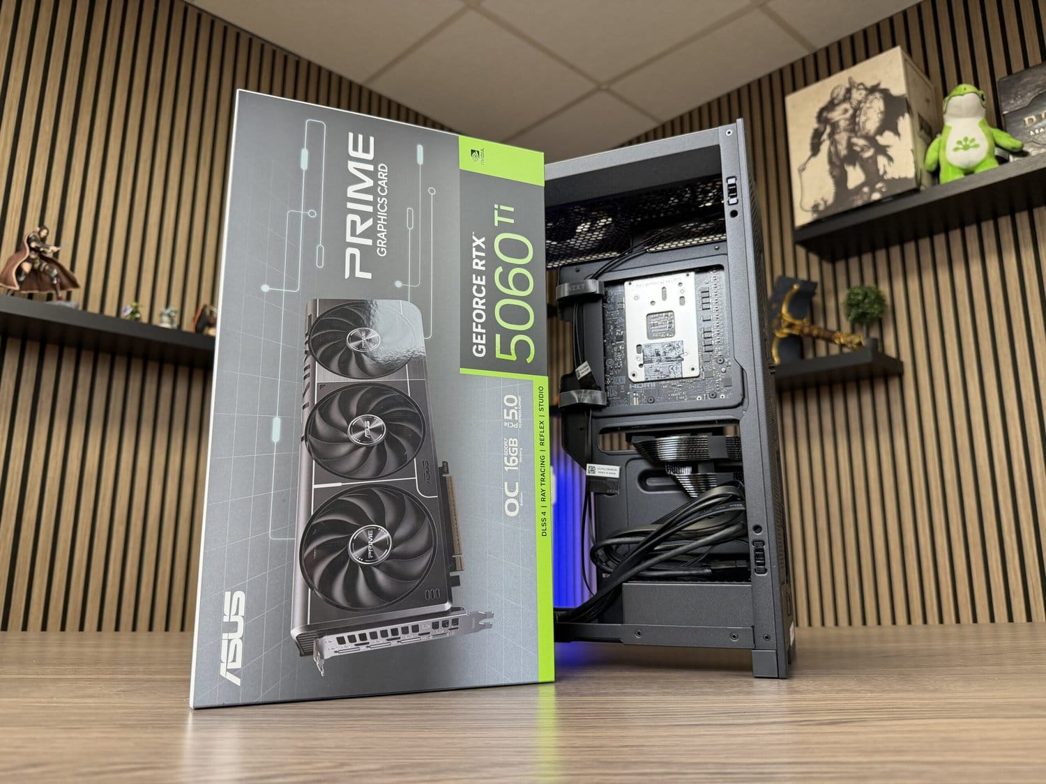 Complementair aan de build en samenstelling aan hardware plaatsen we een ASUS Prime GeForce RTX 5060 Ti 16GB GDDR7 OC Edition. Deze videokaart is 304 mm lang en valt dus met 331 mm goed binnen de maximale lengte.