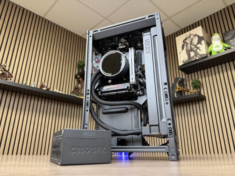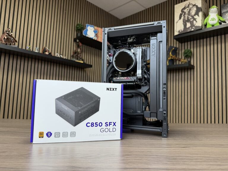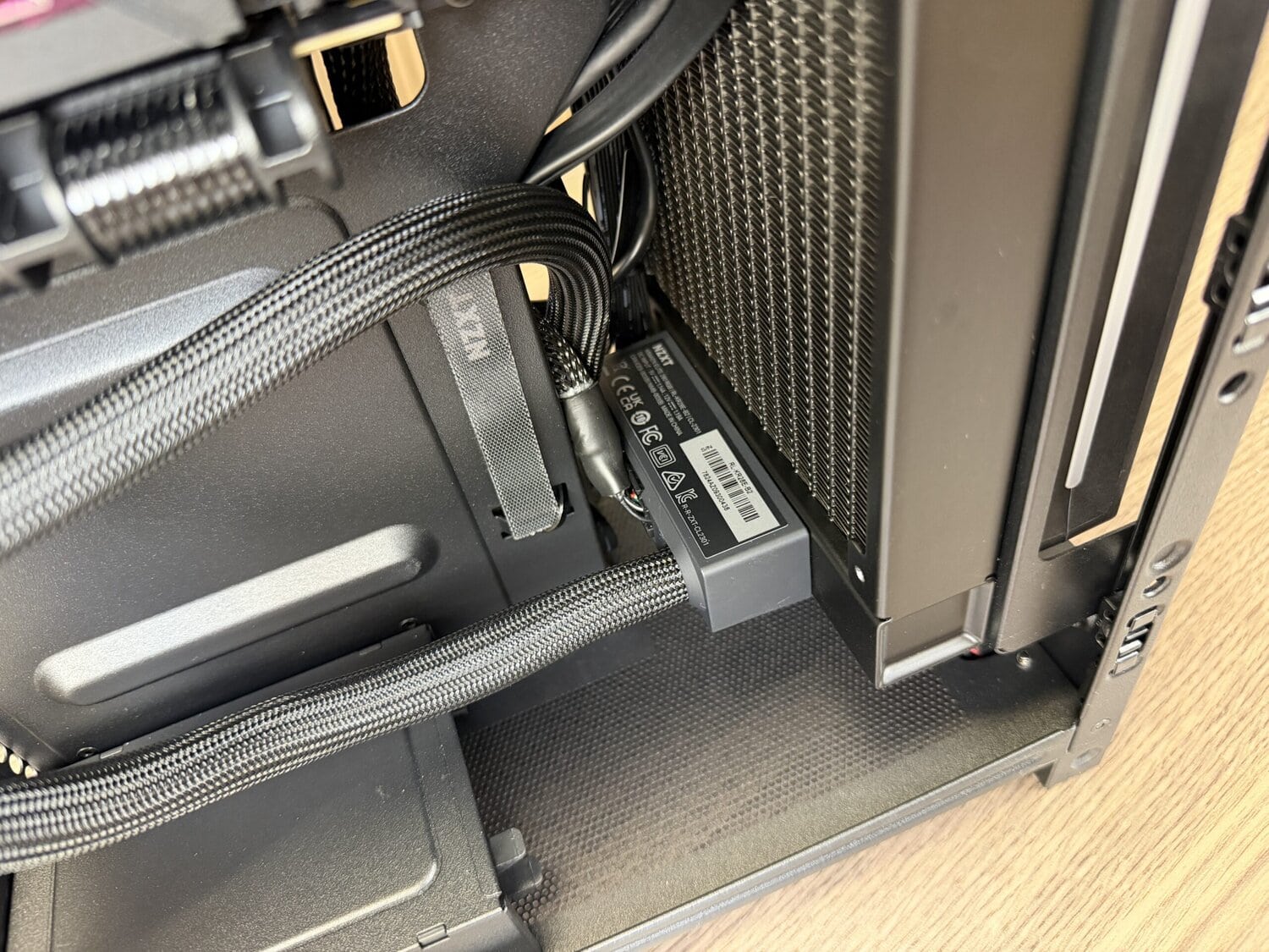 Naast de lancering van de H2 Flow hebben we ook te maken met een nieuwe voeding: de NZXT C850 SFX Gold. Een ATX 3.1 SFX-voeding die met zijn compacte vormfactor deze nieuwe behuizing complimenteert. Dit is overigens de laatste stap van het inbouwen. De C850 SFX Gold komt met een opvallende kabeletui.