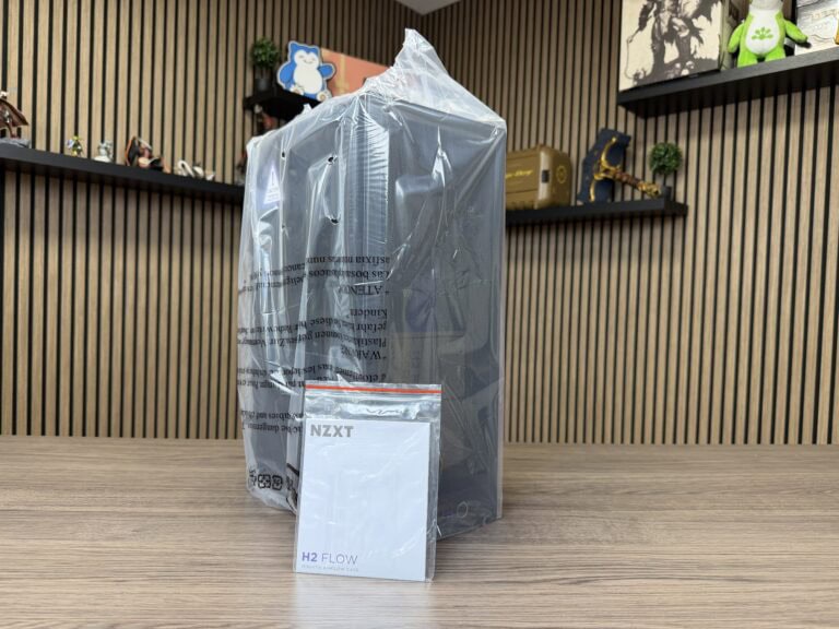 We vliegen de H2 Flow aan met een leuke build, waar je op de foto’s hieronder alvast een korte impressie van krijgt. De H2 Flow zelf komt in een neutrale verpakking. De inhoud bestaat uit piepschuim en folie. Gevolgd door een los zakje met de installatiehandleiding. De installatiehandleiding geeft een duidelijke suggestie in de bouwvolgorde aan componenten; we hebben deze dan ook aangehouden voor deze review.