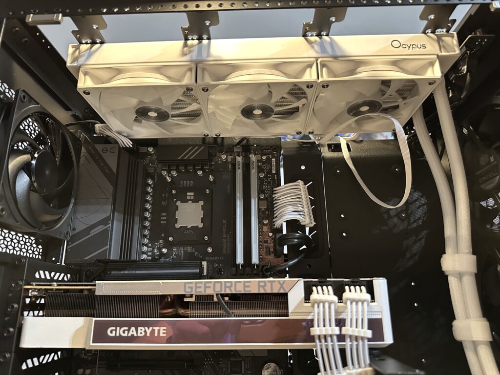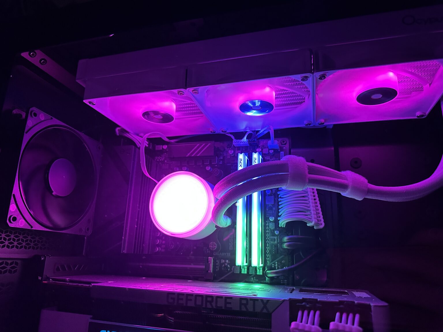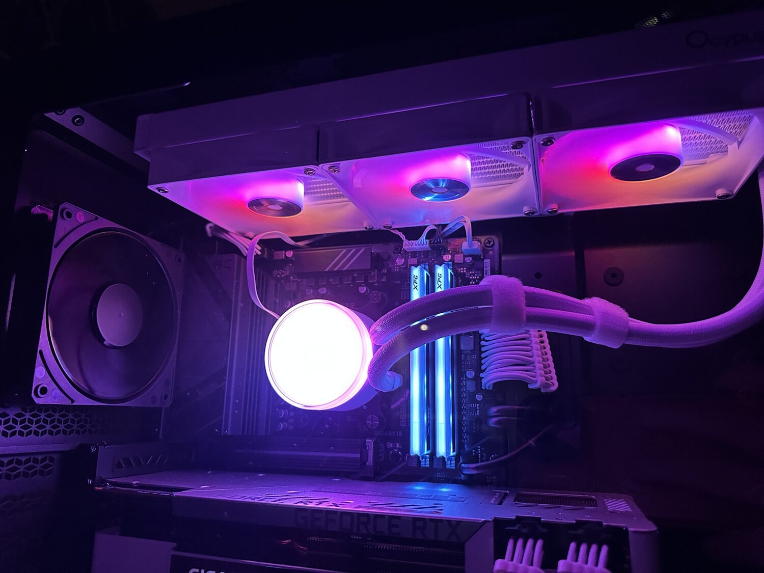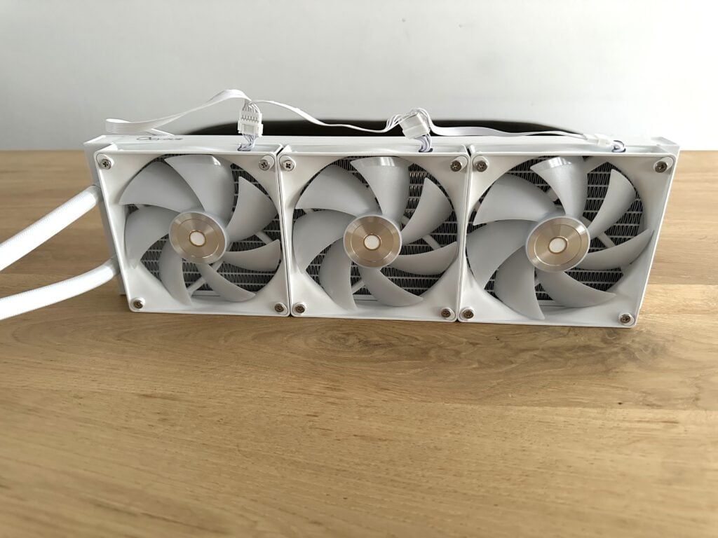 Wat betreft design laat Ocypus zien dat ze oog hebben voor detail. De pomp met zijn matte witte afwerking zorgt ervoor dat de RGB-verlichting er stijlvol en subtiel uitziet, zonder te veel op te vallen. In werkelijkheid komt de verlichting nog beter tot zijn recht dan op foto’s - met zachte kleurovergangen en een helder, maar ingetogen lichteffect. De ventilatoren passen daar perfect bij met hun strakke uiterlijk en stille werking.