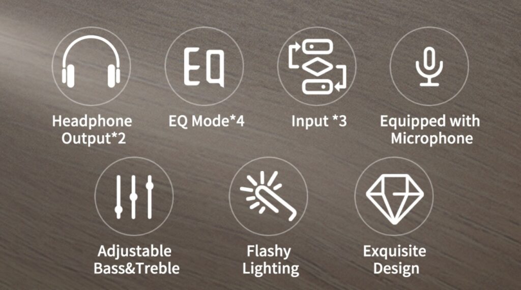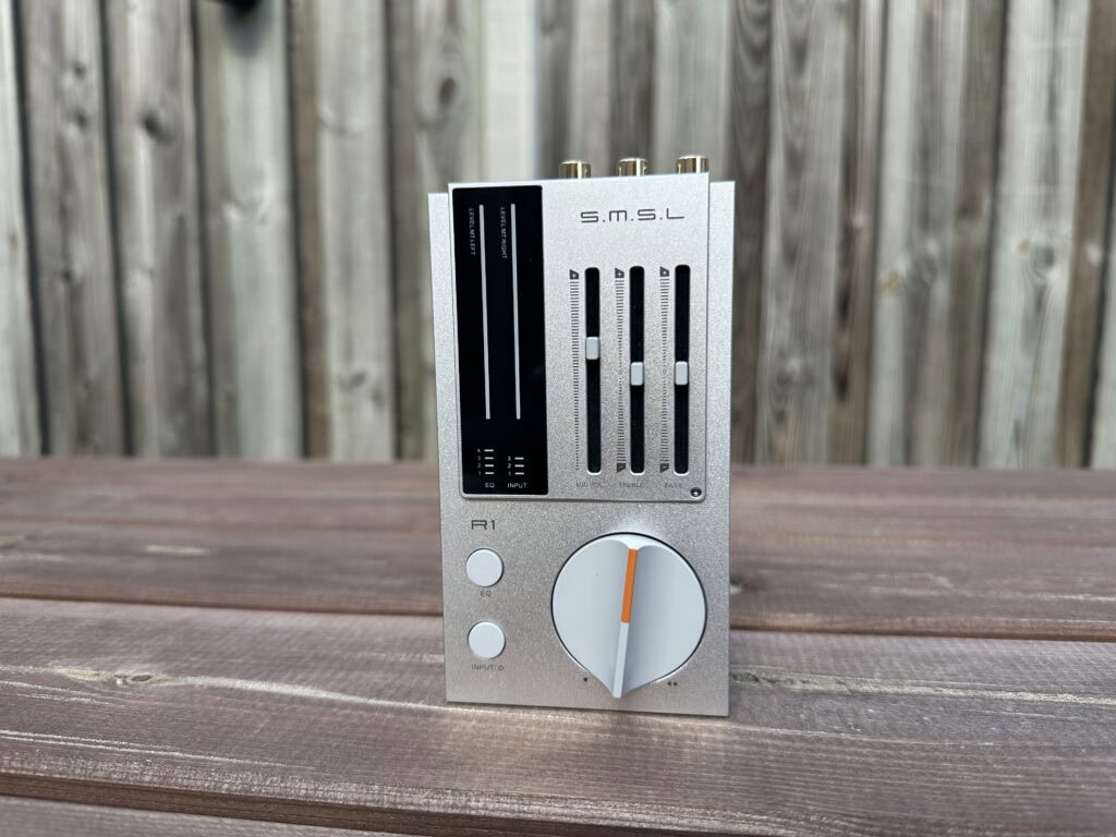 Als we een rondje rondom de S.M.S.L R1 maken, valt als eerste de volledig aluminium behuizing op, waarmee de R1 direct de indruk wekt een premium product te zijn. We zien ook verschillende schakelaars op de bovenkant waarmee we volume-output, de volume-input van een microfoon en de vier verschillende equalizerstanden kunnen bedienen, terwijl we ook gemakkelijk tussen maximaal drie inputs kunnen schakelen. Naast de verschillende voorgeprogrammeerde equalizers kan je ook nog zelf het geluid aanpassen qua treble en bass, zodat je het geluid helemaal naar eigen wens kunt aanpassen.