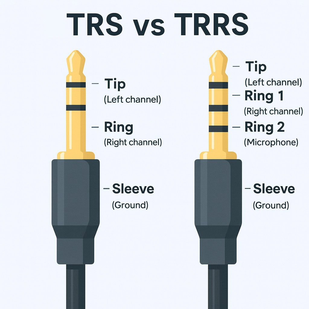 De reden hiervoor is dat de HP-connectors alleen kunnen werken met een TRS-connector en een TRRS waar meer ringen op zitten (o.a. dus voor de microfoon) het signaal flink verstoort. Om het verschil te illustreren, verwijzen we je naar onderstaande afbeelding die duidelijk het verschil tussen de twee connectors weergeeft: