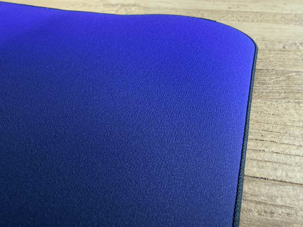 De Mat-D heeft hetzelfde paarsblauwe verloop op de stof zitten als wat je ziet op de productverpakking van de Mouse-A. Aan het formaat van de muismatten moet ik nog wel even wennen. Als ik er een toetsenbord en muis opleg, hou je in mijn ogen net niet genoeg ruimte over om de muis vrij te kunnen bewegen.
