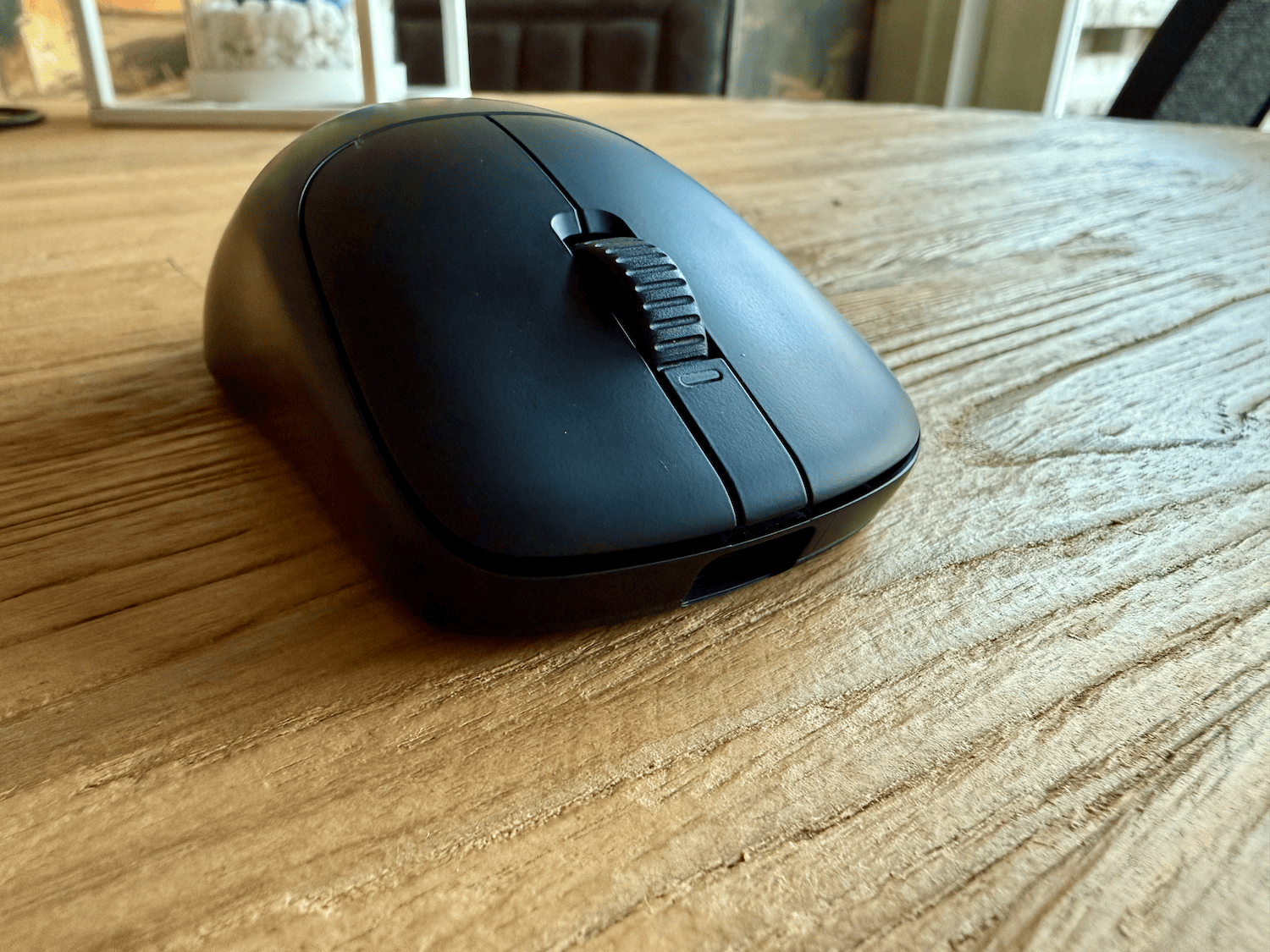 Het scrollwiel is vrij basic, niet bijzonder vormgegeven zoals bij mijn dailymuis. Hier heeft het scrollwiel de vorm van een soort autoband, wat het een leuke uitstraling geeft, maar verder geen toegevoegde waarde heeft. De Mouse-A heeft dit niet en is rechttoe rechtaan. Het knopje aan de onderkant van de muis is multifunctioneel Niet alleen kan je hier de muis mee uit- en aanzetten, maar ook kan de knop worden gebruikt om te wisselen tussen maximaal vier instelbare profielen door deze langer ingedrukt te houden.