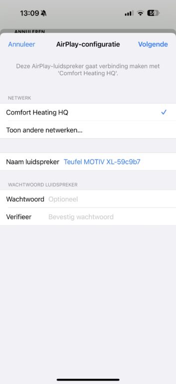 Tijdens de setup verliep de eerste verbinding niet direct vlekkeloos — pas bij de tweede poging, na het opnieuw starten van de Teufel Home-app, werkte alles naar behoren. Zodra de Motiv XL is gekoppeld aan je thuisnetwerk, krijg je toegang tot alle belangrijke functies binnen de app en profiteer je van de eenvoudige connectiviteit met diverse mediabronnen.
