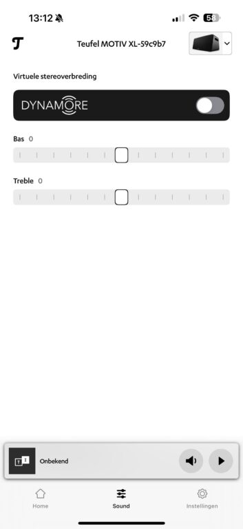 In de Teufel Home-app kun je experimenteren met equalizerinstellingen, eigen geluidsprofielen aanmaken en functies als Dynamore inschakelen voor een dynamischer geluidsbeeld. Dit zijn opties die je met de fysieke knoppen op de speaker niet hebt, en ze geven het toch al indrukwekkende en rijke geluid van de Motiv XL extra diepgang.