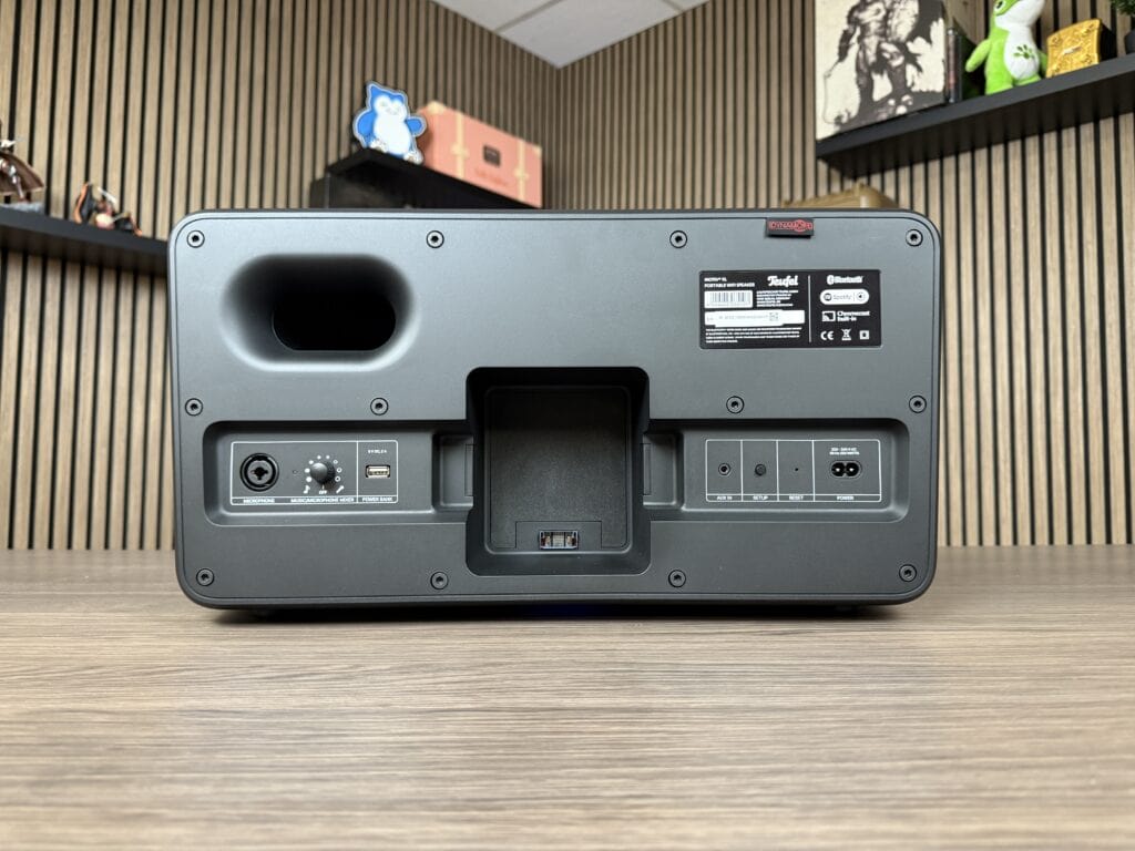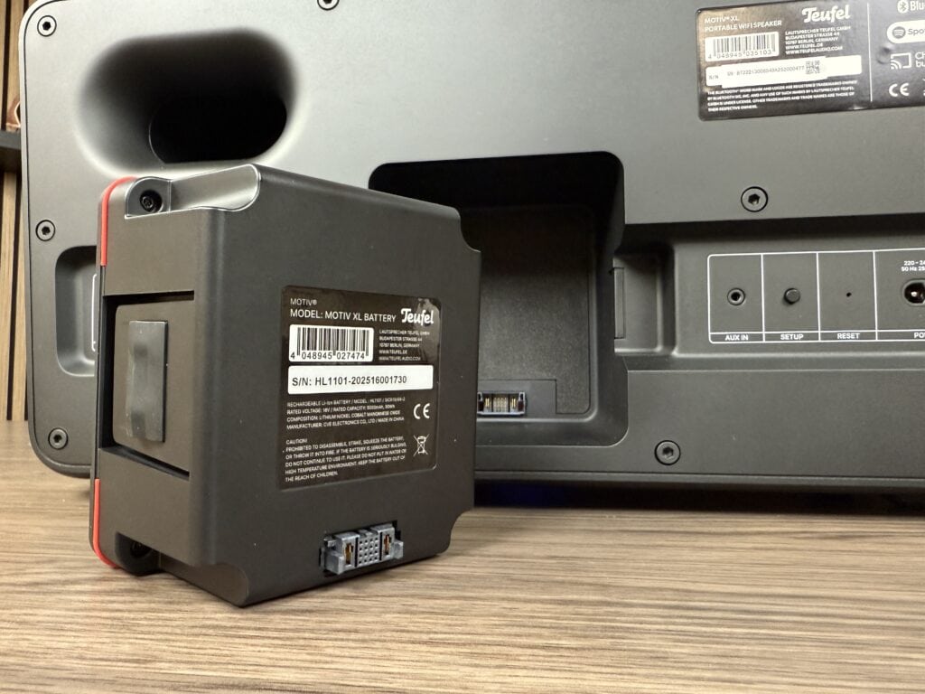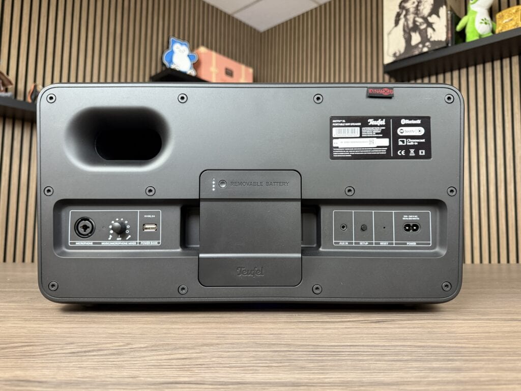 De batterij is verwisselbaar, los verkrijgbaar en biedt een speeltijd van ongeveer 13 uur bij normaal volume. Het feit dat je de batterij zonder schroeven kunt vervangen, is een duidelijk pluspunt — iets wat ons eerder ook al beviel bij de Teufel Rockster Neo.