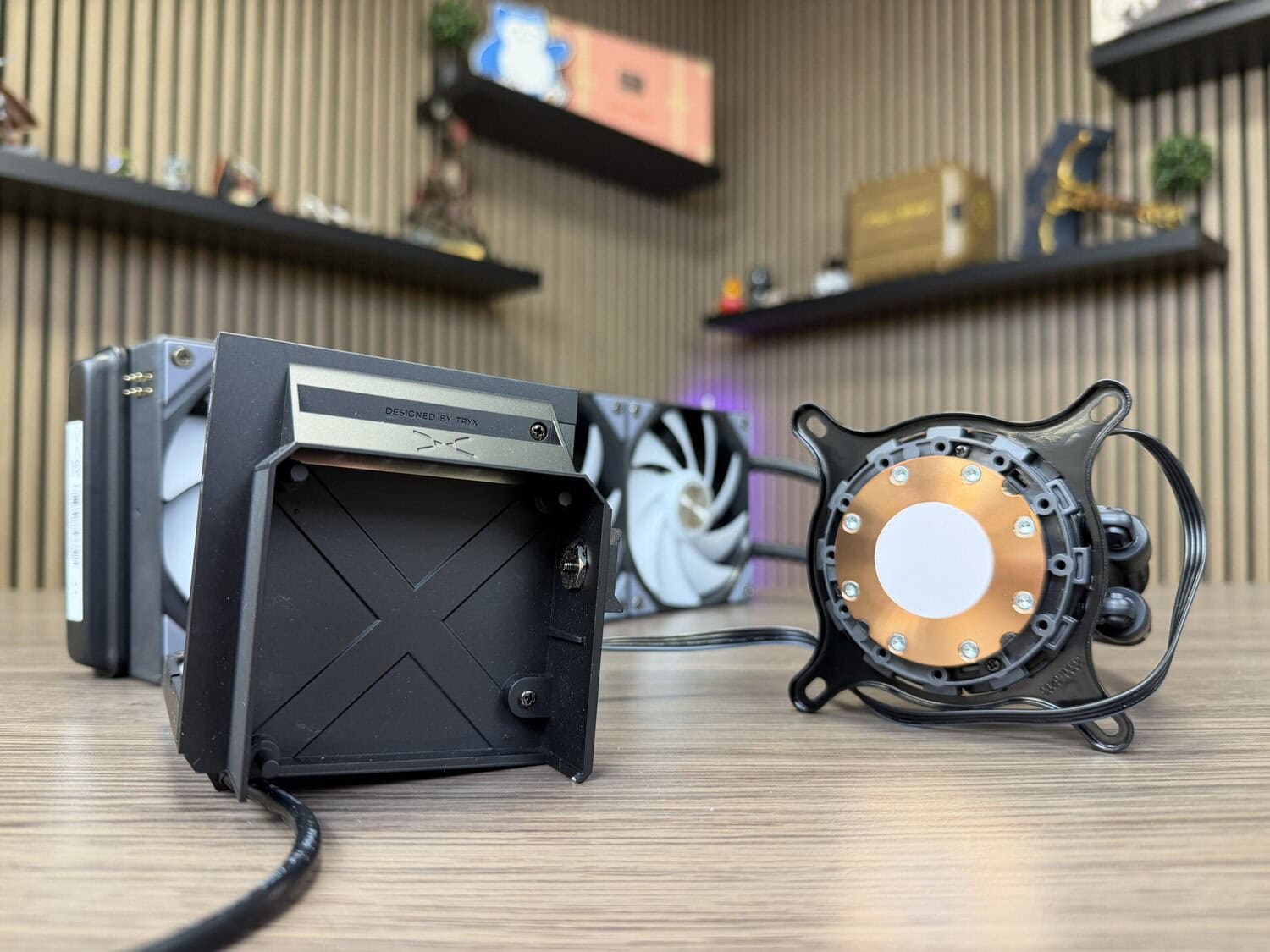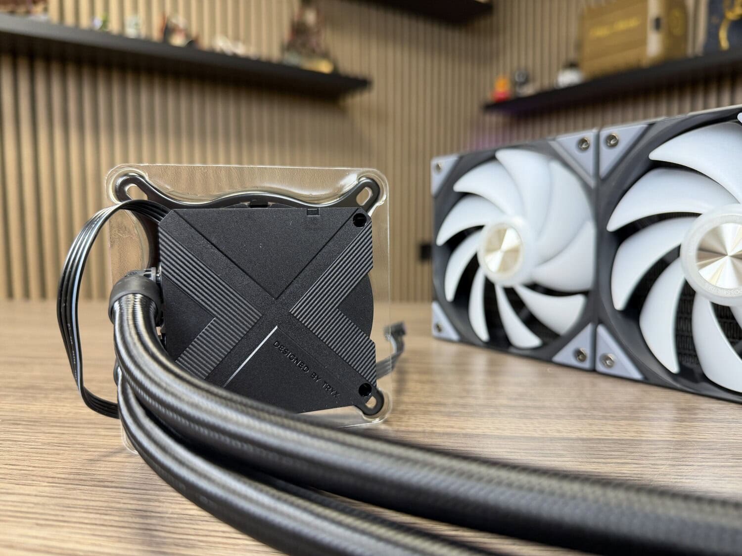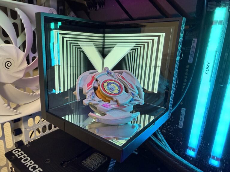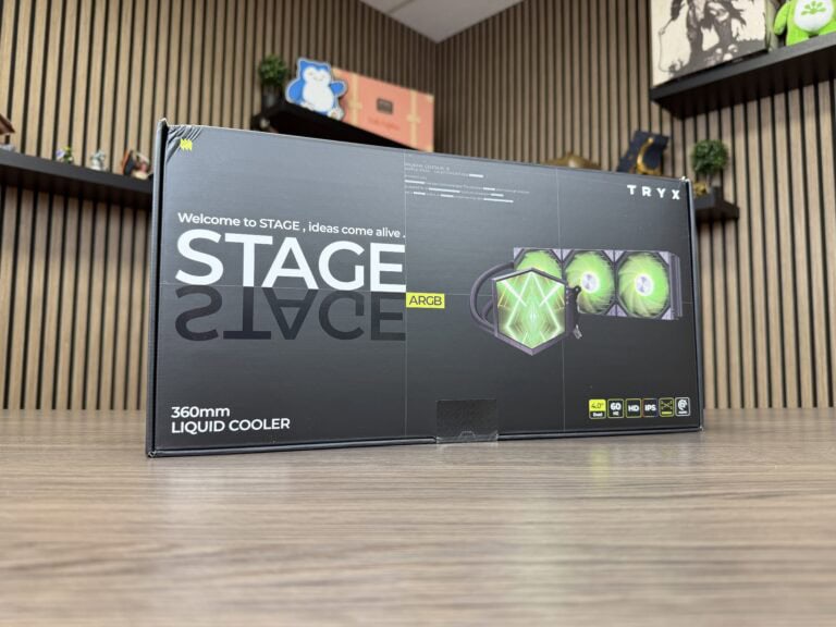 Sinds mijn eerste kennismaking met de TRYX Stage 360 tijdens Computex 2025 kijk ik met enthousiasme uit naar deze all‑in‑one waterkoeler. Bovenop de pomp van deze waterkoeler bevindt zich namelijk een podium, waarvan de achtergrond bestaat uit twee 4-inch IPS-beeldschermen. Ieder scherm levert een 720×720-resolutie met een pixeldichtheid van 254 PPI.
