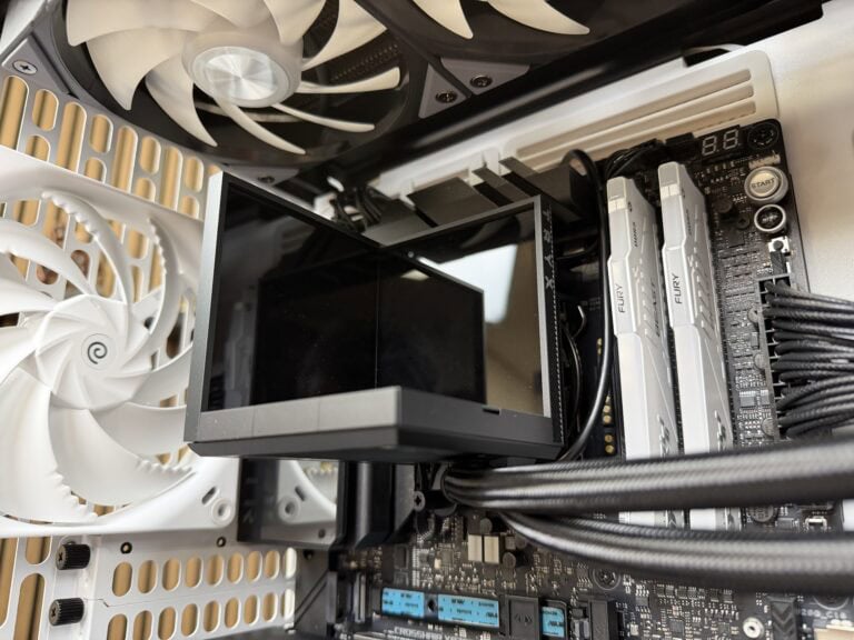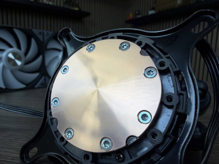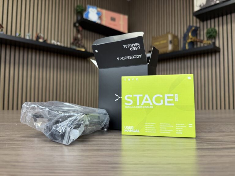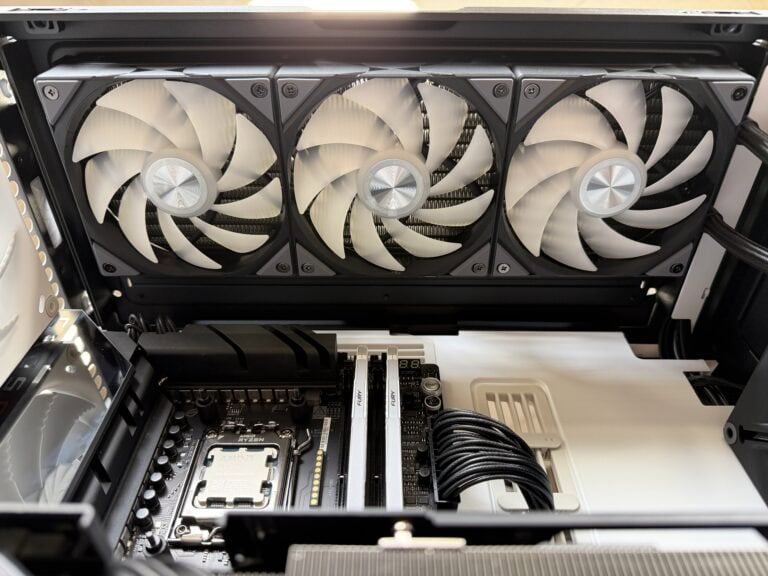 TRYX voorziet het koelblok standaard van koelpasta. Voor de review hebben we deze koelpasta verwijderd en vervangen door Noctua NT-H2-koelpasta. Inmiddels zien we steeds meer all-in-one waterkoelers met voorgeïnstalleerde fans; de Stage 360 is gelukkig geen uitzondering op deze regel. Tijdens het testen van de waterkoeler was redactielid Wieger aanwezig, die ook zijn voorkeur uitsprak voor voorgeïnstalleerde fans. Is het dan toch écht zo’n hekelpunt?