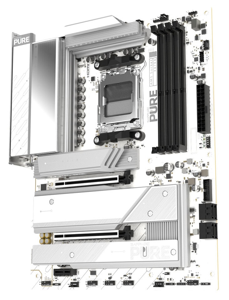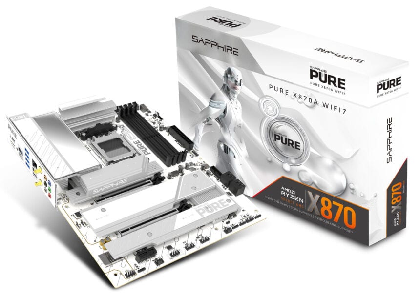 Na gelekte renders in november heeft Sapphire nu bijna volledige specificaties voor zijn aankomende PURE X870A WIFI 7-moederbord op zijn officiële website gepubliceerd. Dit is Sapphire’s eerste AM5-bord op basis van de AMD X870-chipset, nadat het eerder zijn line-up beperkt tot B650- en B850-ontwerpen, waaronder de PURE B850A WIFI 7.