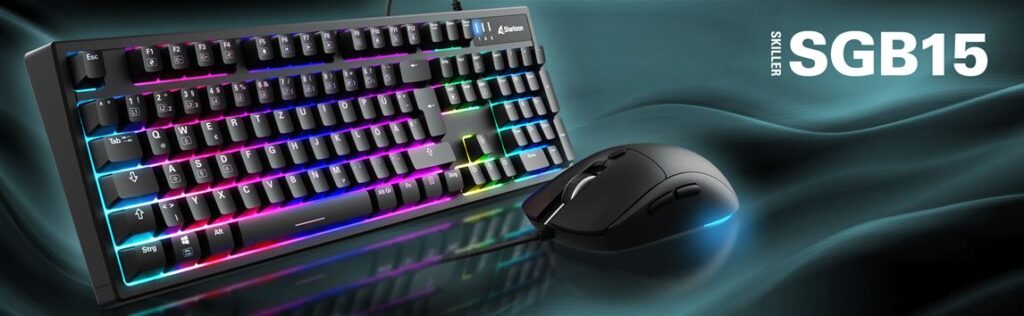De perfecte introductie tot snelle en intense wedstrijden! De SKILLER SGB15 set combineert een stijlvol toetsenbord met rubberen membraan met een precieze gamingmuis. Het toetsenbord heeft een volledige 3-blok lay-out, terwijl de muis is uitgerust met een polling rate van 1000 Hz en tot 4200 DPI in zes niveaus. En de heldere RGB-verlichting met coole effecten zorgt ervoor dat je nieuwe uitrusting een blikvanger is, niet alleen tijdens het gamen.