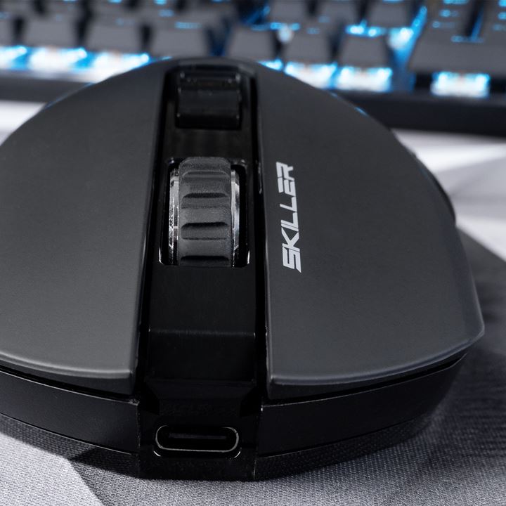 De SKILLER SGM30W heeft een draadloze batterijduur tot wel 70 uur en kan naar wens worden opgeladen, zowel draadloos als met de meegeleverde USB-C naar USB-A-kabel.