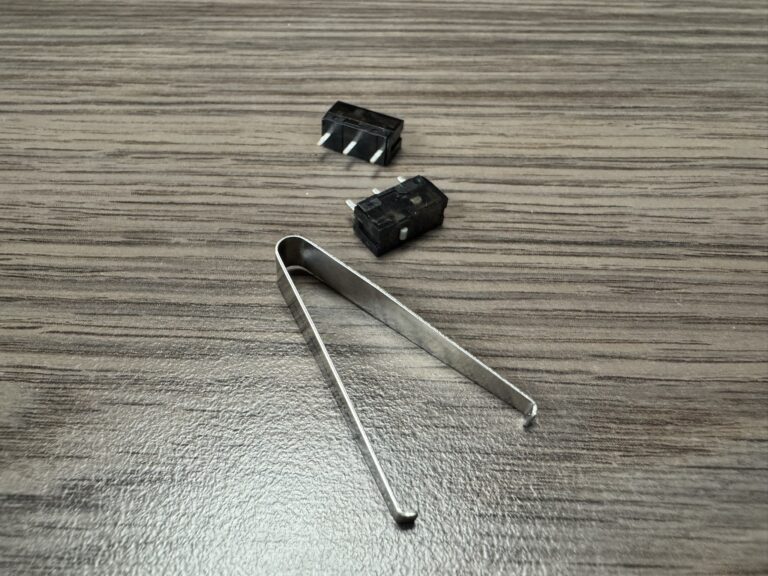 Het meegeleverde envelopje bevat een set extra 100% PTFE-muisvoetjes en een set griptape voor de muis. Wat dit pakket zo extra compleet maakt, is dat ROG er ook nog een extra set muisswitches meelevert, samen met een tangetje om ze feilloos te kunnen vervangen.