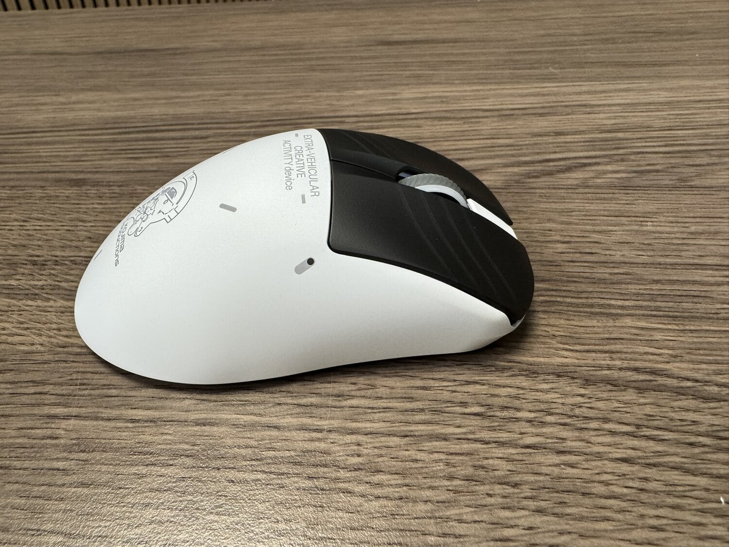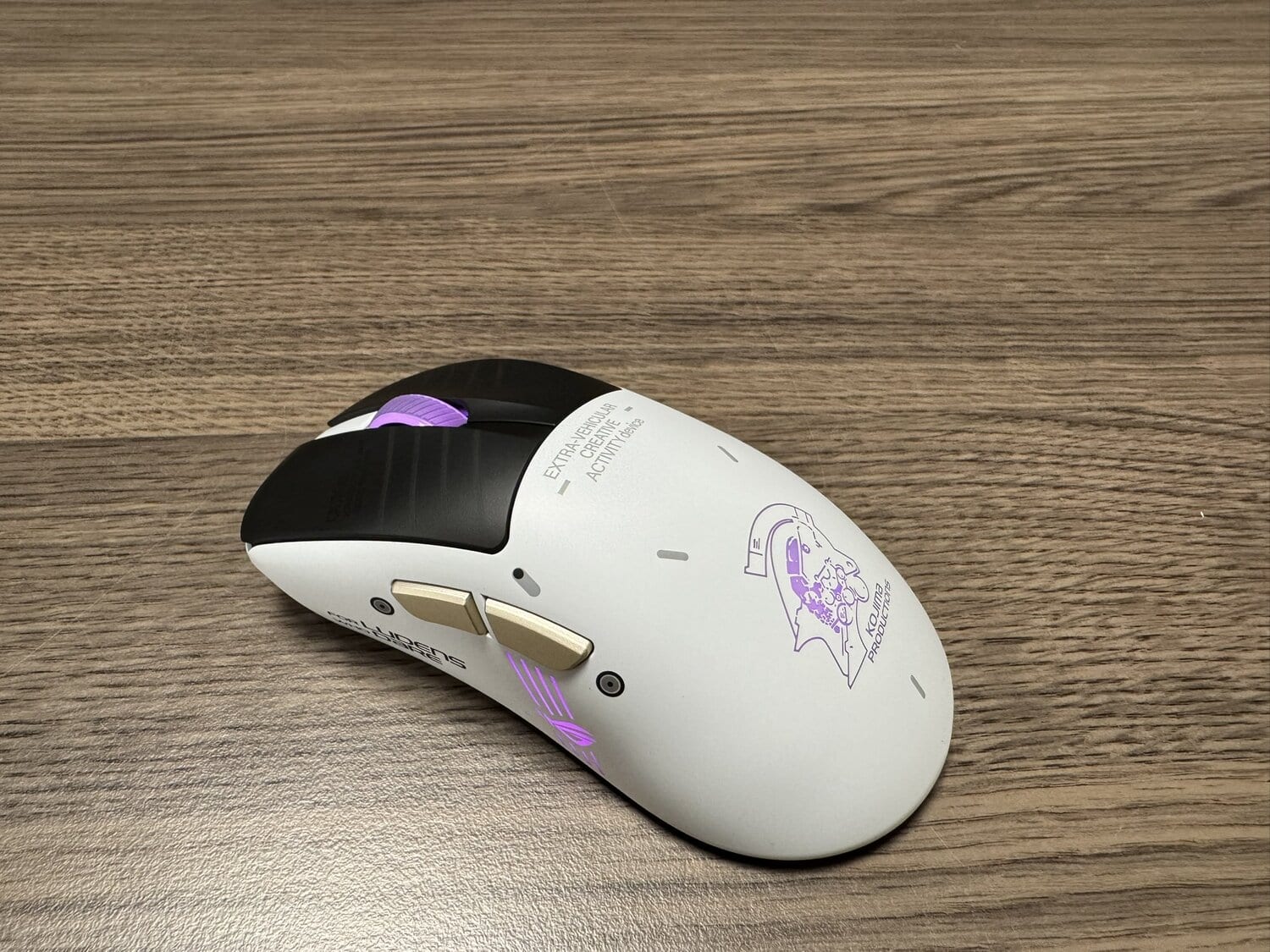 Op de rug van de muis zien we weer het logo van KOJIMA PRODUCTIONS afgebeeld, waarvan ik echt hoop dat dit op zal lichten als de muis aangaat. Aan de rechterzijde van de muis hebben we een strak en glad wit oppervlak zonder toeters en bellen.