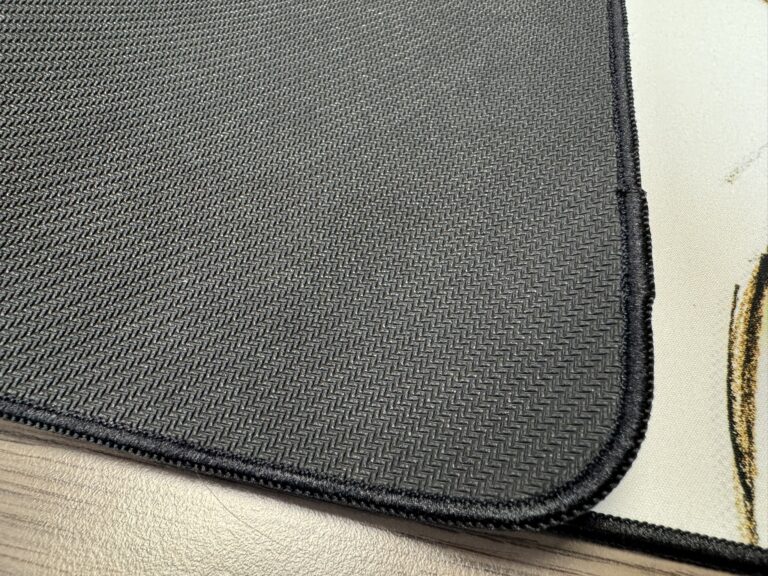 De muismat voelt soepel, doch stevig aan. Het oppervlak voelt glad en onderop zien we een stevige antislip stof toegevoegd.