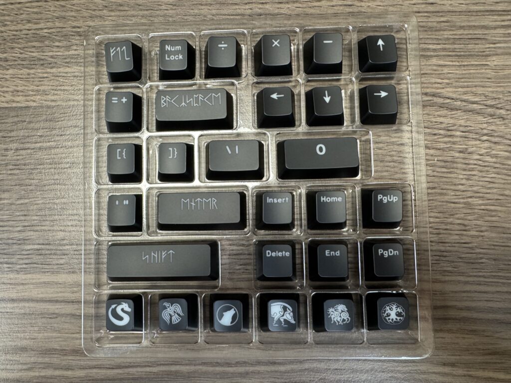 De keycaps komen in een nette zwarte doos waarin meerdere plastic houders vol keycaps zitten. Het vervangen van de keycaps is een eitje; het enige lastige aspect is kiezen welke keycaps je wil gebruiken uit de dubbele varianten. Ook is er het kiezen van een plekje voor de speciale keycaps die uitgerust zijn met afbeeldingen van Jörmungandr, Sleipnir, Yggdrasil en meer. Wij hebben gekozen voor een plaatsing op de toetsen 1-6 van het bord.