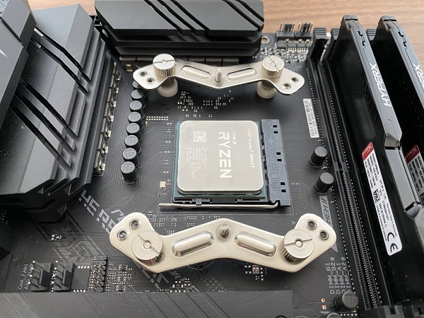 Montage van de Hydrogon D120 ARGB is eenvoudig op het AMD-platform. Deze neemt plaats op de AM4 test bench i.c.m. een AMD Ryzen 7 3800XT. Je kan gebruik maken van de standaard AM4-backplate (achterplaat) van je moederbord. Het montageproces bestaat uit het plaatsen van een viertal afstandsbusjes, waarna je deze opsluit tussen een viertal duimschroeven met schroefdraadverbinding.