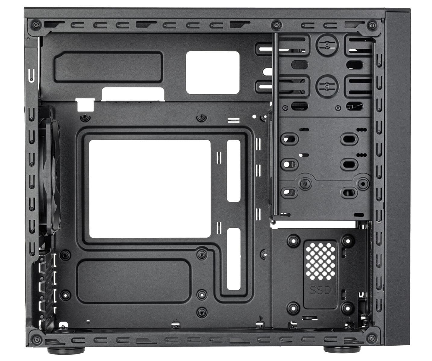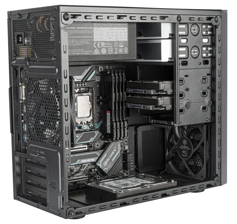 SilverStone heeft vandaag de FARA 314 aangekondigd, een microATX-towerbehuizing die een unieke combinatie biedt van een klassieke lay-out met traditionele opslagmogelijkheden, maar toch ruimte biedt voor moderne high-end grafische kaarten. De behuizing heeft een lay-out die doet denken aan microATX-towers van 20 jaar geleden, met de voeding boven het moederbord. De behuizing is voorzien van een modulaire drive cage met twee 5,25-inch bays, drie 3,5-inch bays en één 2,5-inch bay. Daarnaast is er een 2,5-inch montagepunt op het moederbord en een 3,5-inch montagepunt op de bodemplaat.
