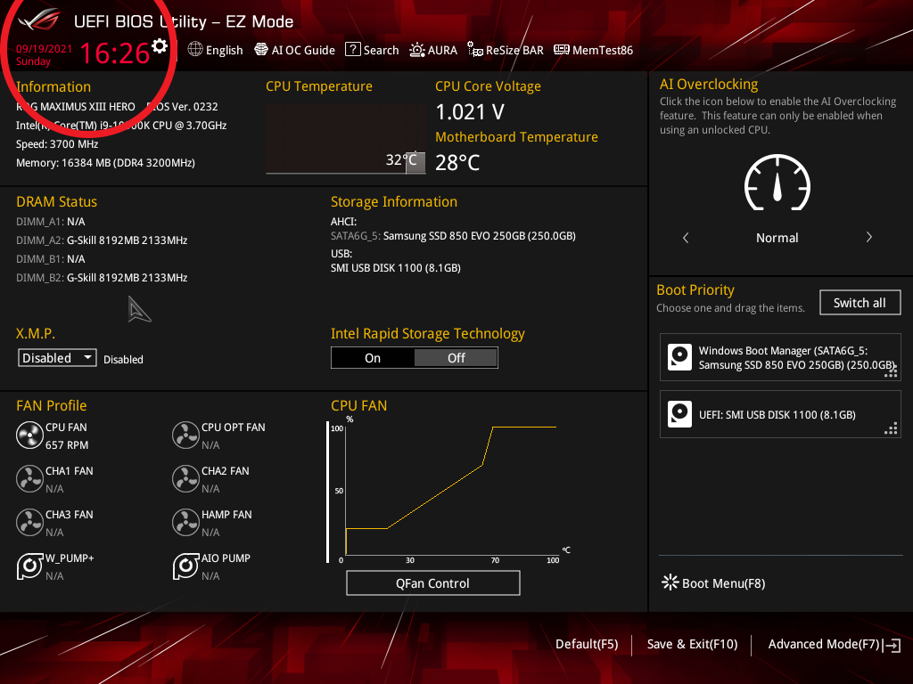 Tijd en datumNa het kiezen van de gewenste modus is het handig om te controleren of de correcte tijd en datum ingesteld zijn in het BIOS. Indien die verkeerd staan, kunnen er onverwachte gevolgen zijn tijdens de installatie van je besturingssysteem en naderhand je software. Daarnaast kan het voorkomen dat je niet langer (veilig) kan browsen op het internet, dus het is toch nog één van de belangrijkere instellingen om na te kijken.