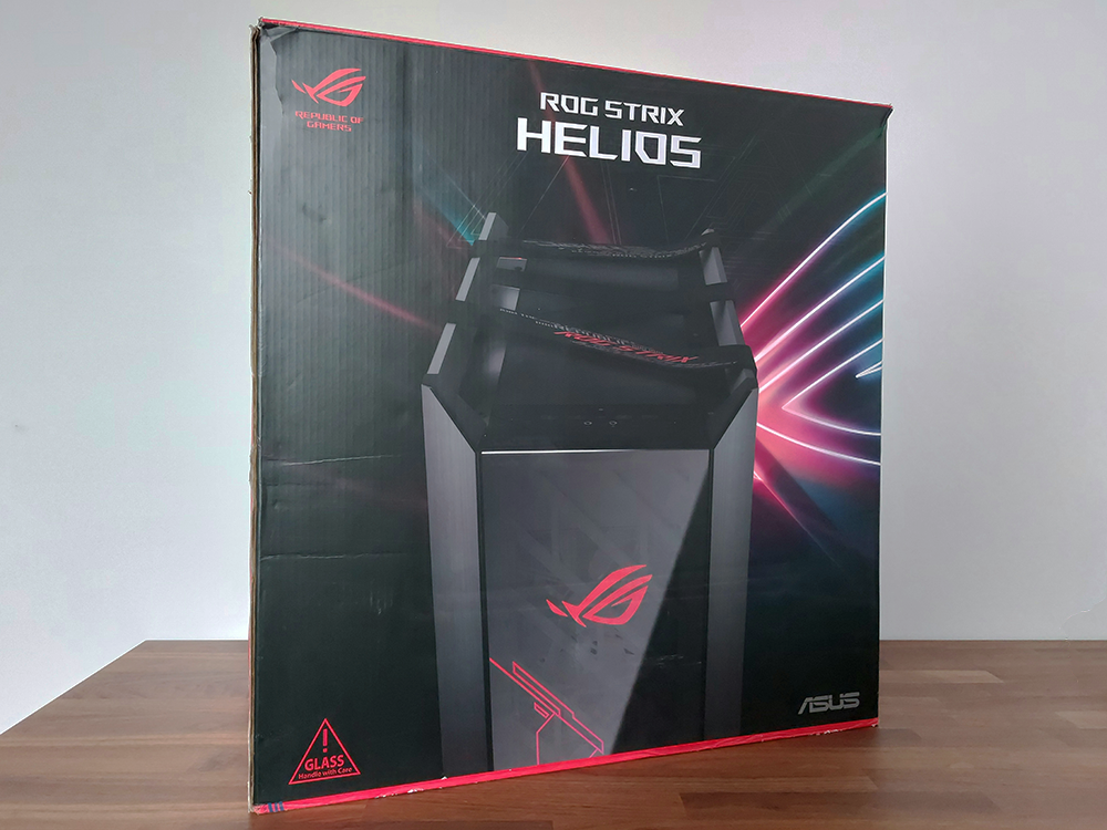 Met alle hardware ingebouwd en gemanaged, het BIOS geconfigureerd en Windows geïnstalleerd, resteert er slechts één zaak: de aanschouwing van het harde werk. Hieronder zien we het strakke uiterlijk van de Helios in volle glorie, inclusief een uniek stukje RGB-verlichting bij het voorpaneel van gehard glas. Het is niet voor niets dat deze behuizing het vlaggenschip van ASUS betreft.