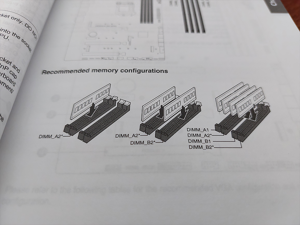 In de handleiding van je moederbord kan je controleren in welke sloten de geheugenmodules geïnstalleerd moeten worden. Bij een enkele module betreft dit meestal het tweede slot naast de processor en niet het eerste slot. Bij twee modules betreft dit veelal het tweede en vierde slot en niet twee sloten naast elkaar. Dat in verband met de werking van dual channel en hoe individuele sloten verbonden zijn aan én werken met de processor.