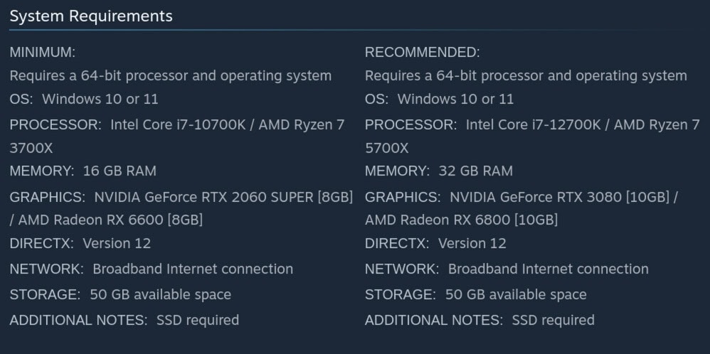 In de aankondigingsvideo van de test geeft Kaplan toe dat het een beperkte test betreft, dus niet iedereen die zich aanmeldt, krijgt een plek om mee te spelen. Kaplan noemt het “het volgende belangrijke moment voor de ontwikkeling van deze game", wat suggereert dat Kintsugiyama de gegevens en feedback van de speeltest zal gebruiken voor verdere verbetering en ontwikkeling van de game. Een FAQ op de Steam-pagina van de game meldt dat er “in de zomer" nog een speeltest zal plaatsvinden en dat de game eerst in Early Access zal verschijnen voordat de volledige release plaatsvindt. De FAQ gaat ook in op de minimale hardwarevereisten van de game, die blijkbaar tegelijk met de aankondiging van de speeltest aan de Steam-pagina zijn toegevoegd. Volgens de FAQ zijn de minimale hardwarevereisten - een NVIDIA GeForce RTX 2060 Super 8 GB of AMD Radeon RX 6600 8 GB, 16 GB RAM en een Intel Core i7-10700K of AMD Ryzen 7 3700X - gericht op 30 FPS, terwijl de aanbevolen specificaties - een NVIDIA GeForce RTX 3080 of AMD Radeon RX 6800, 32 GB RAM en een Intel Core i7-12700K of AMD Ryzen 7 5700X - gericht zijn op 60 FPS.