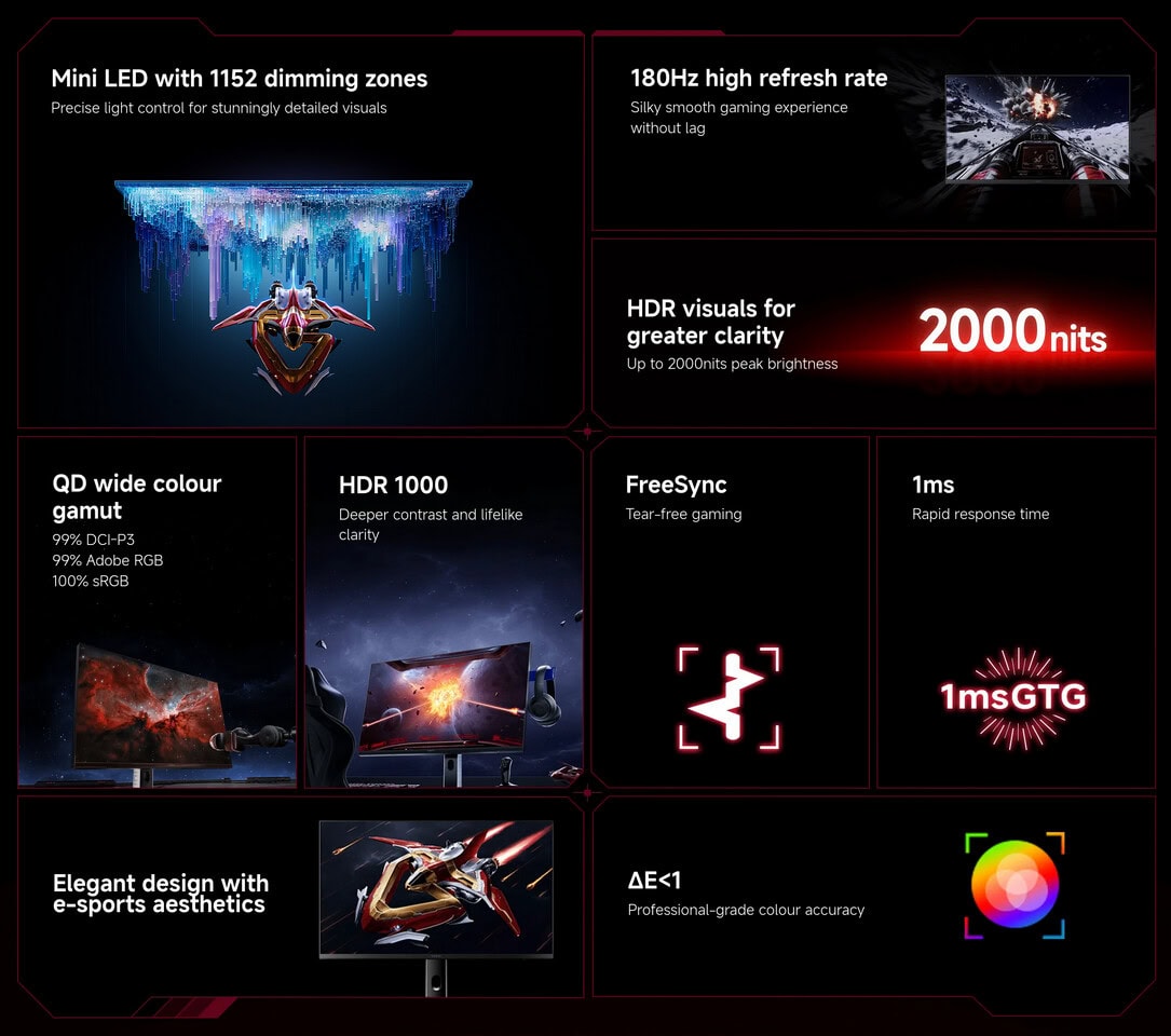 Xiaomi heeft de G Pro 27Qi (2026) gamingmonitor officieel uitgebracht voor de wereldwijde markt. De G Pro 27Qi is een 16:9 e-sports gamingmonitor met een resolutie van 1440p, AMD FreeSync-ondersteuning en een verversingssnelheid van 180 Hz. De G Pro 27Qi is voorzien van een IPS-paneel met mini-LED-achtergrondverlichting. Volgens Xiaomi heeft de G Pro 27Qi een piekhelderheid van 2000 nits en een contrastverhouding van 1000:1. Hij beschikt over 1152 lokale dimzones, is VESA DisplayHDR 1000-gecertificeerd en maakt gebruik van een eigen engine voor scèneherkenning. De lokale dimming heeft drie niveaus en kan desgewenst worden uitgeschakeld. Het scherm is momenteel verkrijgbaar in de wereldwijde webshop van Xiaomi voor AUD 475 (ongeveer USD 330), hoewel de prijs mogelijk op een gegeven moment zal stijgen naar AUD 699. Het scherm lijkt momenteel niet in de Amerikaanse webwinkel te staan, met de G Pro 27i als meest vergelijkbare optie, hoewel die de helft van de maximale helderheid heeft.